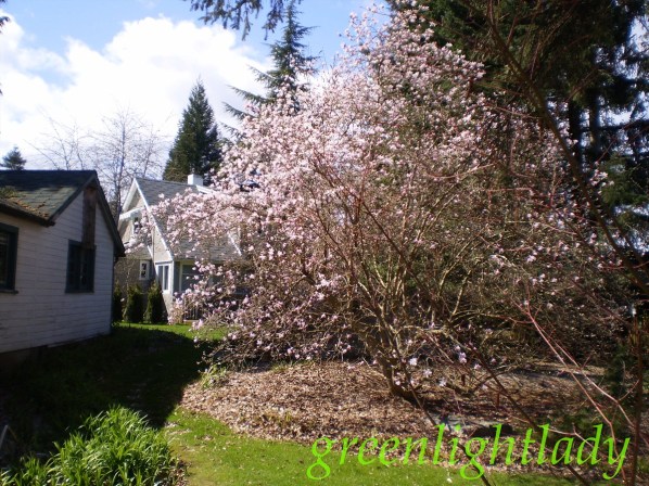 This magnolia tree was planted, many years ago, by the previous owner of our place. She said that her children loved to play under it. It is much too large for most modern-day gardens, however, it is most welcome in the woodland area of ours. I just toss the fallen leaves underneath it each autumn and leave them.